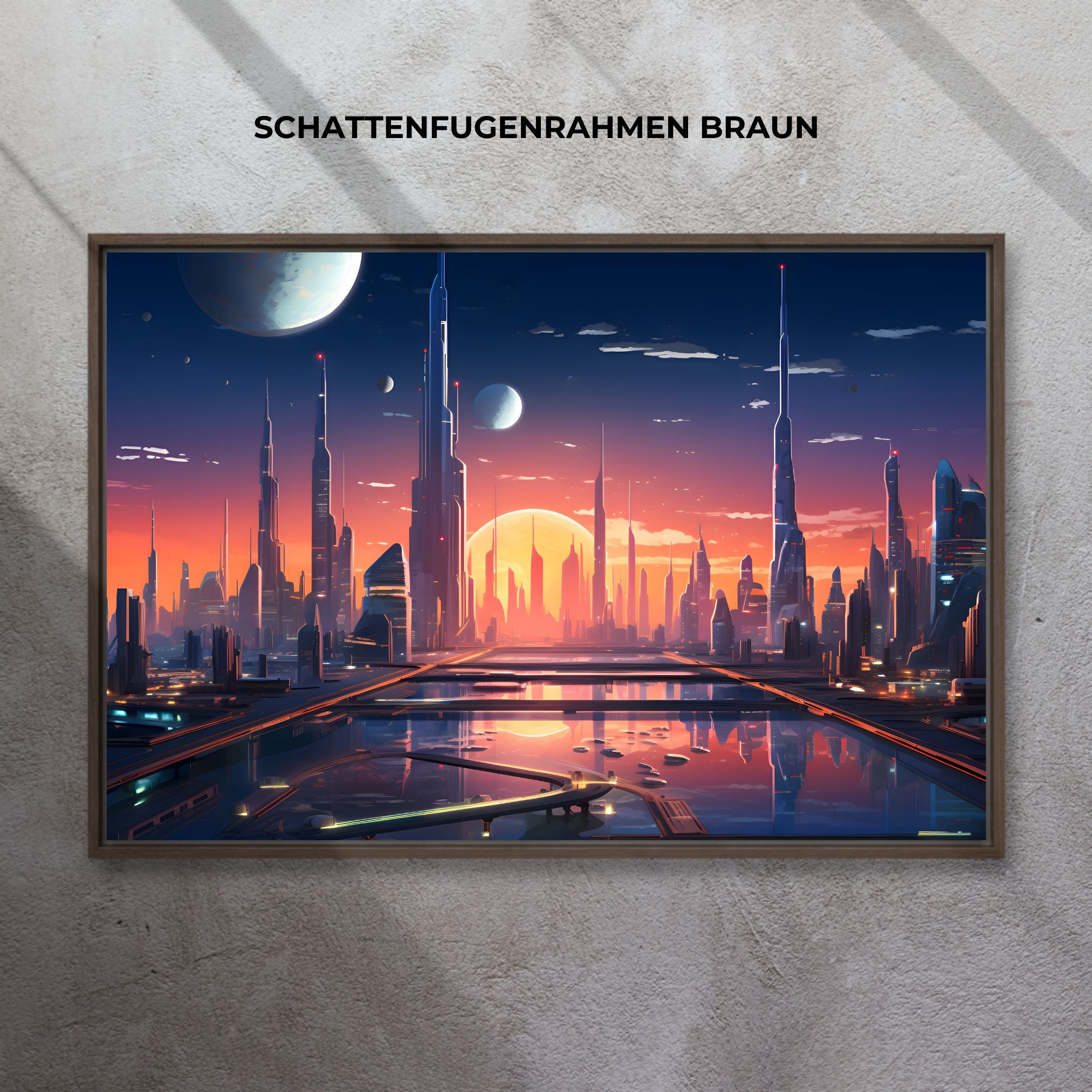 Ein FSC-zertifizierter Echtholz-Schattenfugenrahmen verleiht deinem Bild eine elegante, moderne Galerie-Wirkung mit einem dezenten Schwebe-Effekt. Da es sich um echtes Holz handelt, können Farbe und Maserung leicht von der Abbildung abweichen – jedes Stück ist ein natürliches Unikat.